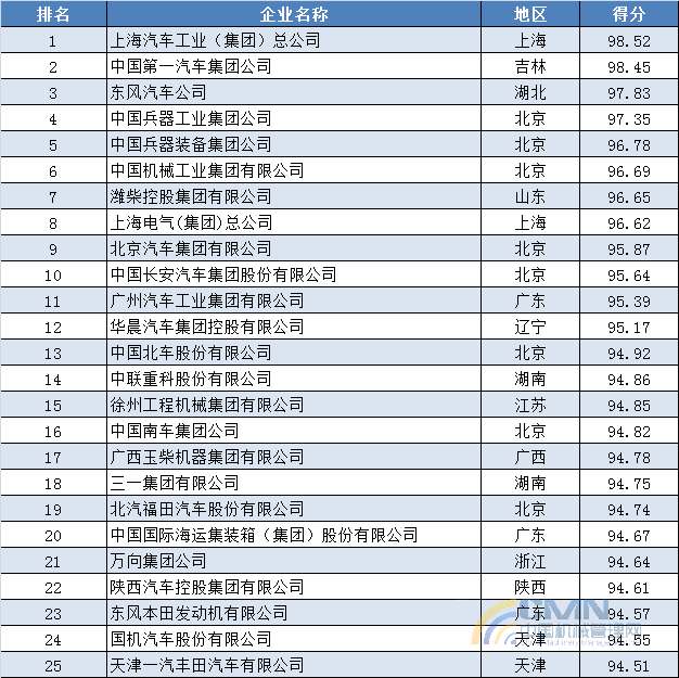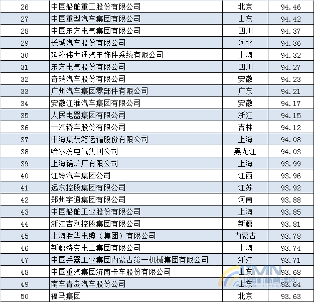 2013年中國(guó)機(jī)械500強(qiáng)排名(1-100)