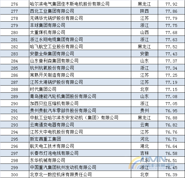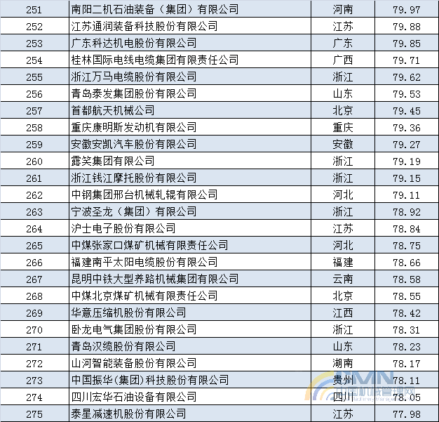 2013年中國(guó)機(jī)械500強(qiáng)排名