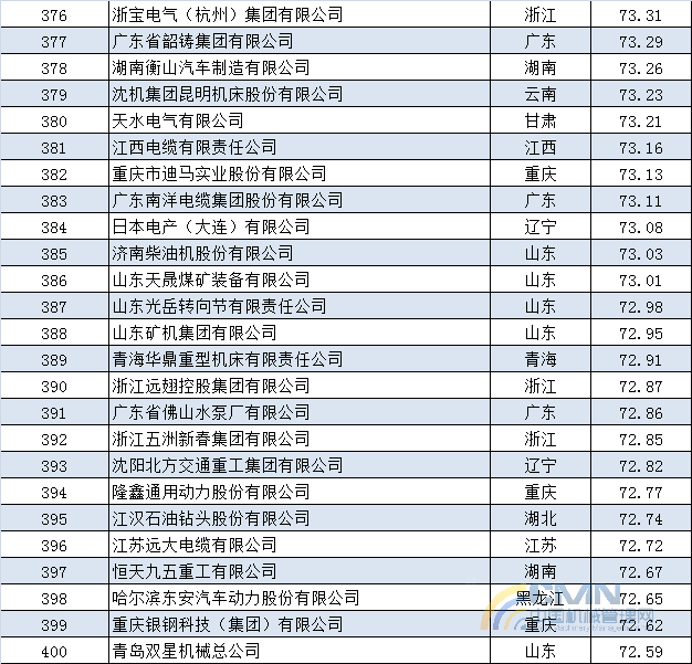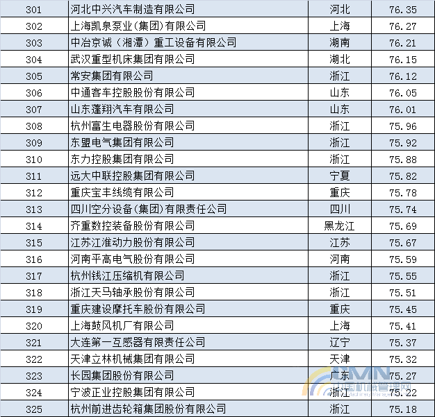 2013年中國(guó)機(jī)械500強(qiáng)排名