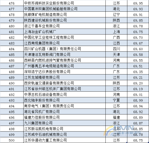 2013年中國(guó)機(jī)械500強(qiáng)排名