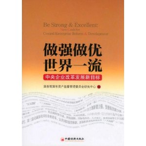 國務(wù)院國有資產(chǎn)監(jiān)督管理委員會研究中心緊密圍繞國資委的中心工作,組織人員專門就中央企業(yè)改革發(fā)展的“一大目標(biāo)”,“五大戰(zhàn)略”,“三大保障”內(nèi)容進(jìn)一步細(xì)化和擴(kuò)展。出版《做強(qiáng)做優(yōu),世界一流:中央企業(yè)改革發(fā)展新目標(biāo)》,旨在對中央企業(yè)改革發(fā)展目標(biāo)和戰(zhàn)略部署進(jìn)行梳理和前瞻性的闡述,就培育一批具有國際競爭力的世界一流企業(yè)應(yīng)具備的基本要素、實(shí)施戰(zhàn)略和創(chuàng)新探索等重要內(nèi)容提出了政策性、操作性和建設(shè)性的理論思考和改革設(shè)想。