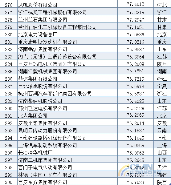 2006年中國(guó)機(jī)械500強(qiáng)排名(201-300)