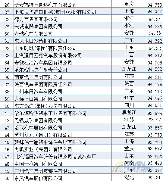 2007年中國(guó)機(jī)械500強(qiáng)排名(1-100)
