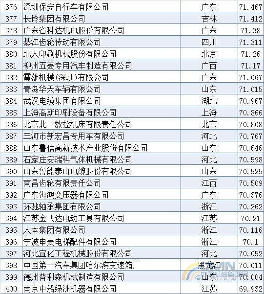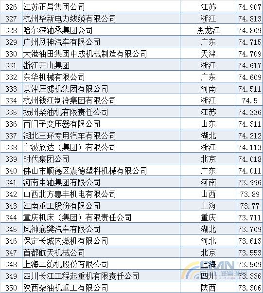 2007年中國機(jī)械500強(qiáng)排名(301-400)