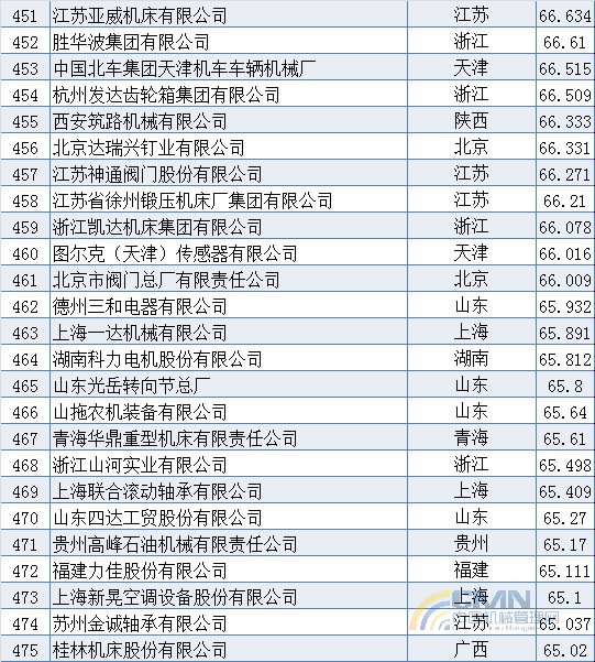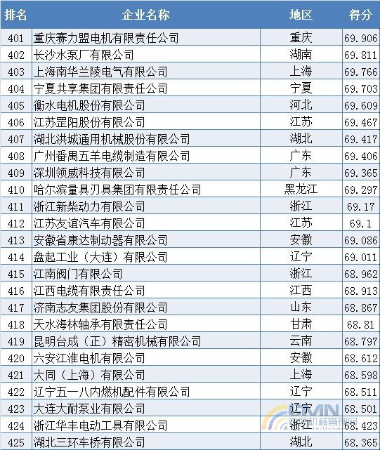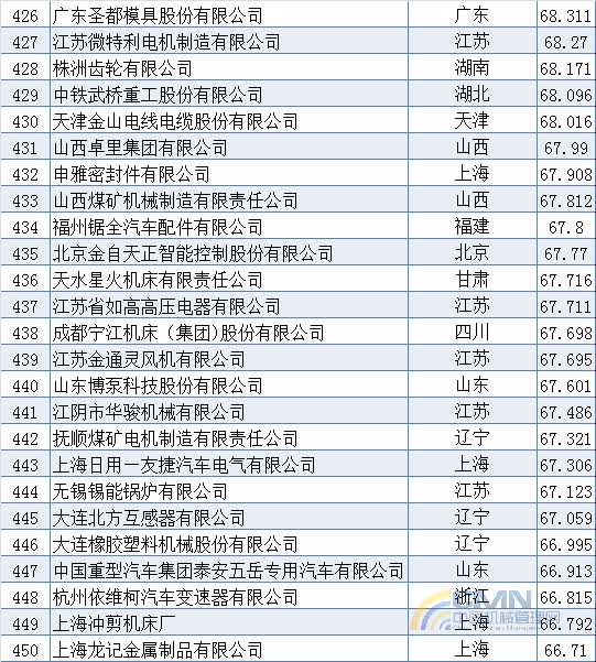 2007年中國機(jī)械500強(qiáng)排名(401-500)