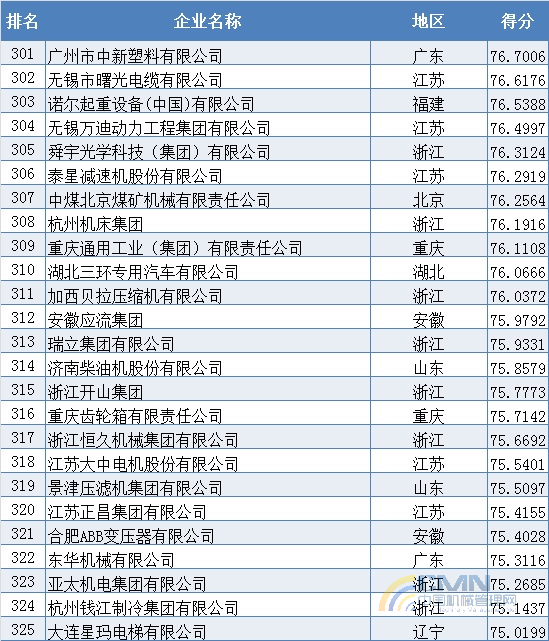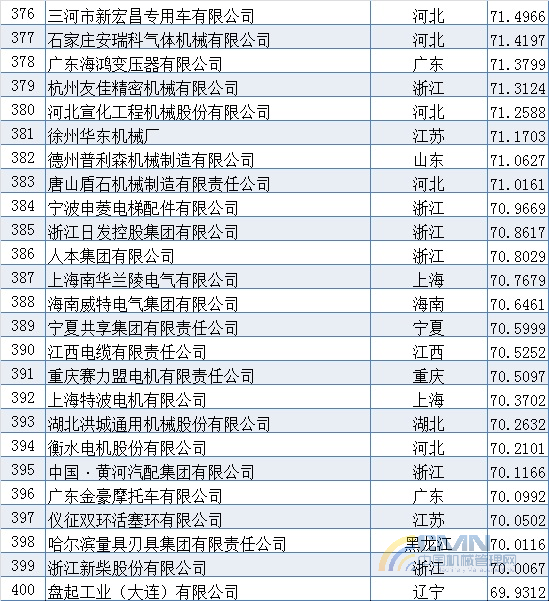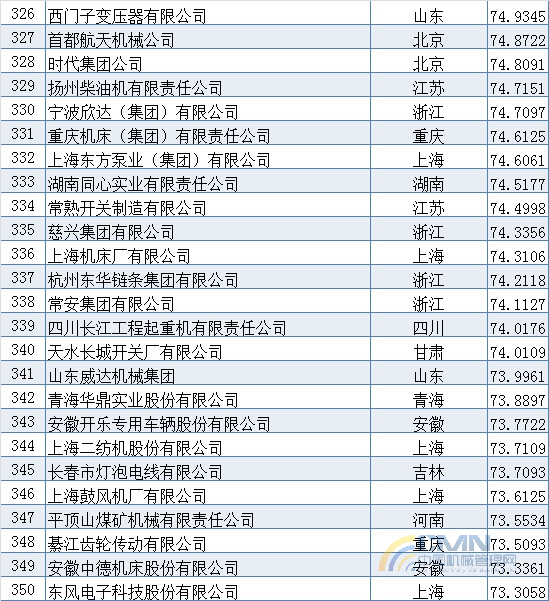 2008年中國(guó)機(jī)械500強(qiáng)排名(301-400)