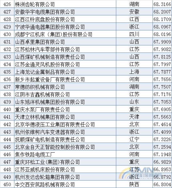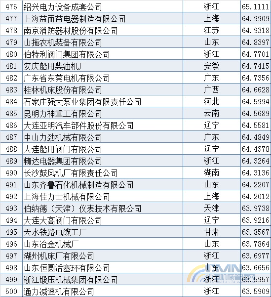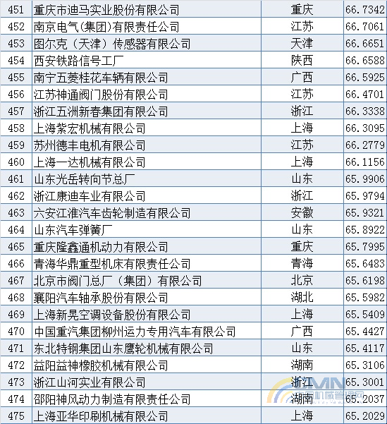 2008年中國(guó)機(jī)械500強(qiáng)排名(401-500)