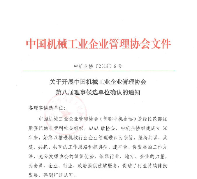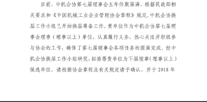 關(guān)于開展中國機械工業(yè)企業(yè)管理協(xié)會第八屆理事候選單位確認的通知