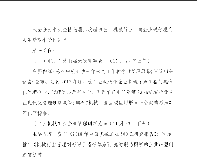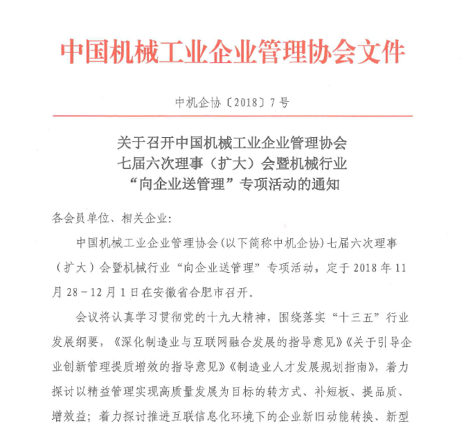中機(jī)企協(xié)七屆六次理事(擴(kuò)大)會(huì)暨機(jī)械行業(yè)“向企業(yè)送管理”專(zhuān)項(xiàng)活動(dòng)通知