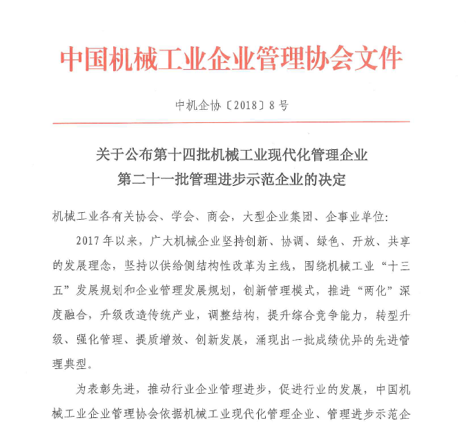 關于公布第十四批機械工業(yè)現代化管理企業(yè)、第二十一批管理進步示范企業(yè)的決定-中機企協〔2018〕8號.pdf
