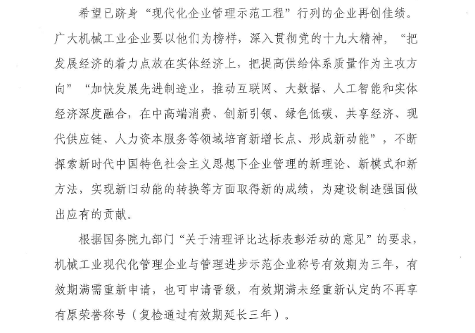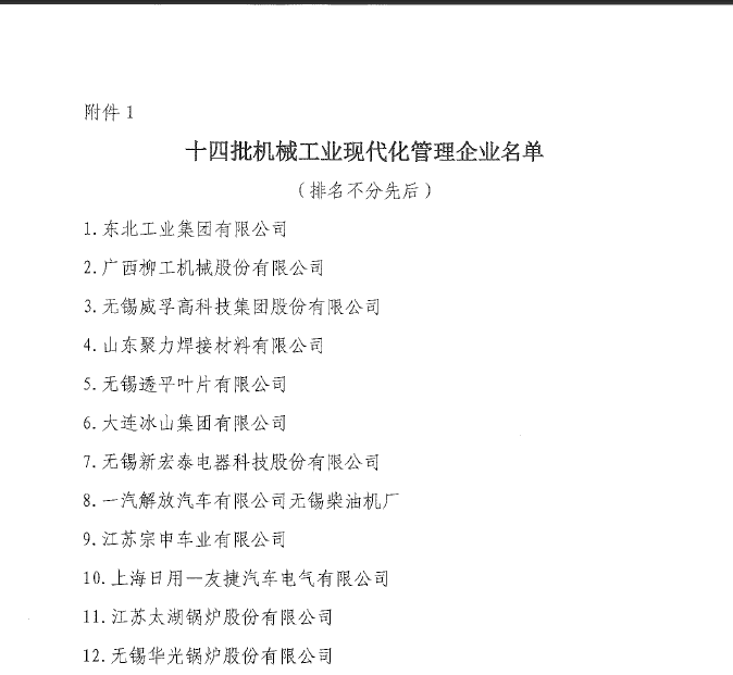 關于公布第十四批機械工業(yè)現代化管理企業(yè)、第二十一批管理進步示范企業(yè)的決定