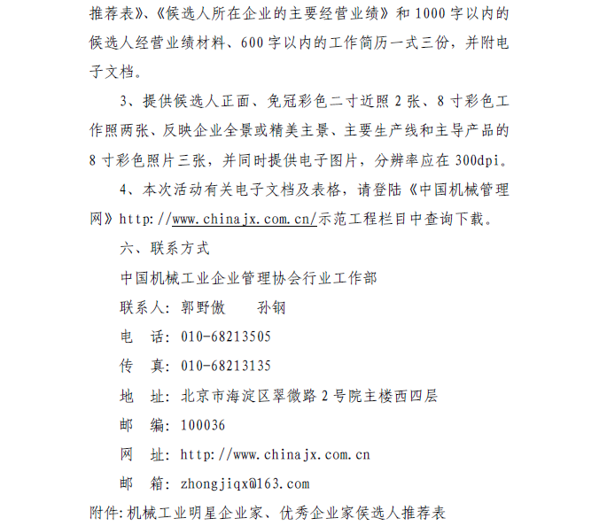 關(guān)于做好2017~2018年度機(jī)械工業(yè)優(yōu)秀企業(yè)家、明星企業(yè)家遴選表彰工作的通知-中機(jī)企協(xié)〔2018〕14號.pdf