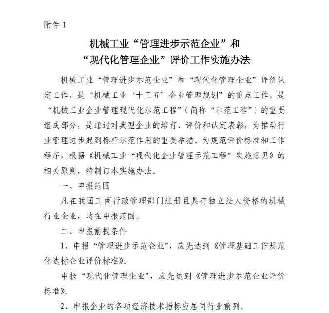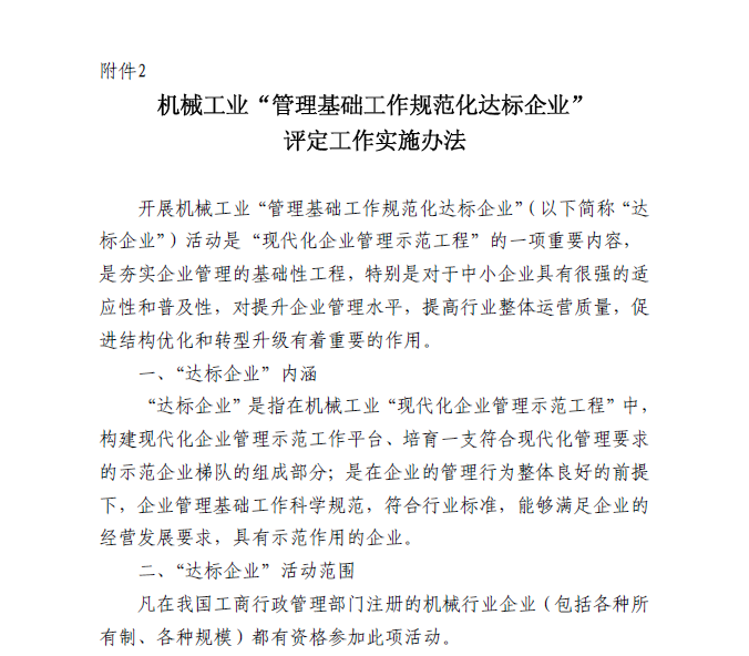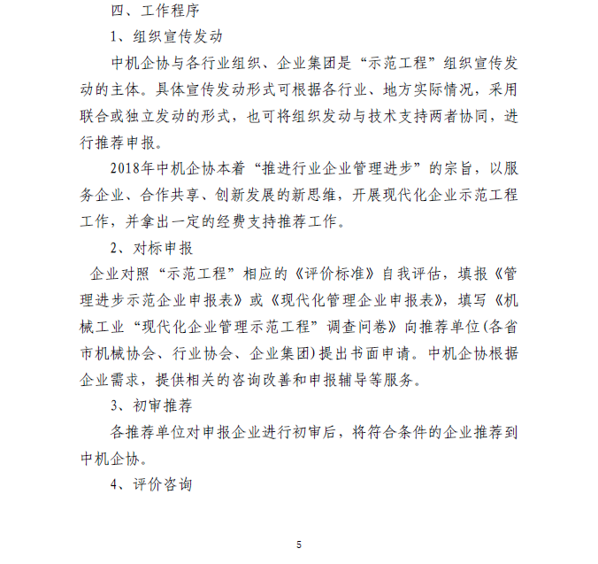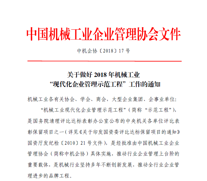 關于做好2018年機械工業(yè)“現(xiàn)代化企業(yè)管理示范工程”工作的通知