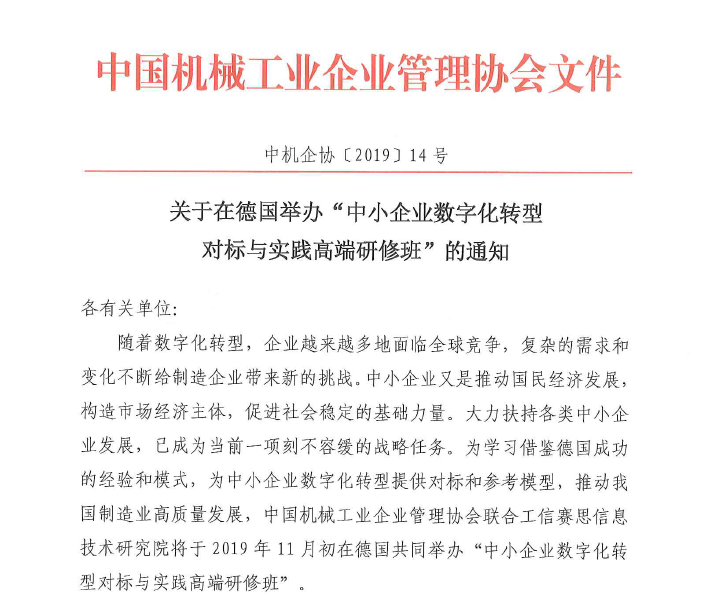 關(guān)于在德國舉辦“中小企業(yè)數(shù)字化轉(zhuǎn)型對標(biāo)與實(shí)踐高端研修班”的通知-中機(jī)企協(xié)〔2019〕14號.pdf