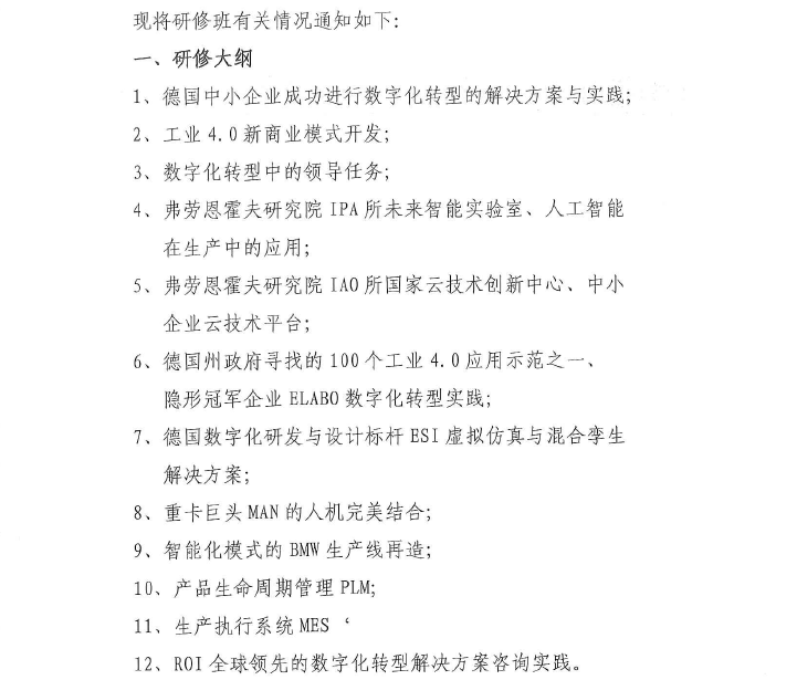 關(guān)于在德國舉辦"中小企業(yè)數(shù)字化轉(zhuǎn)型對標(biāo)與實(shí)踐高端研修班"的通知