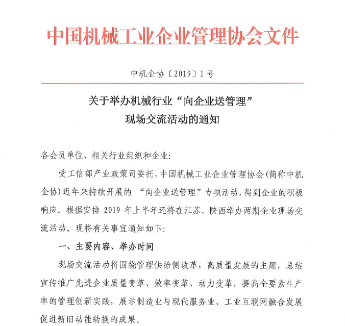 關(guān)于舉辦機(jī)械行業(yè)“向企業(yè)送管理”現(xiàn)場交流活動(dòng)的通知