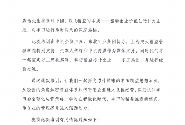 關于舉辦《精益的本質——驅動企業(yè)價值創(chuàng)造》高端培訓的通知