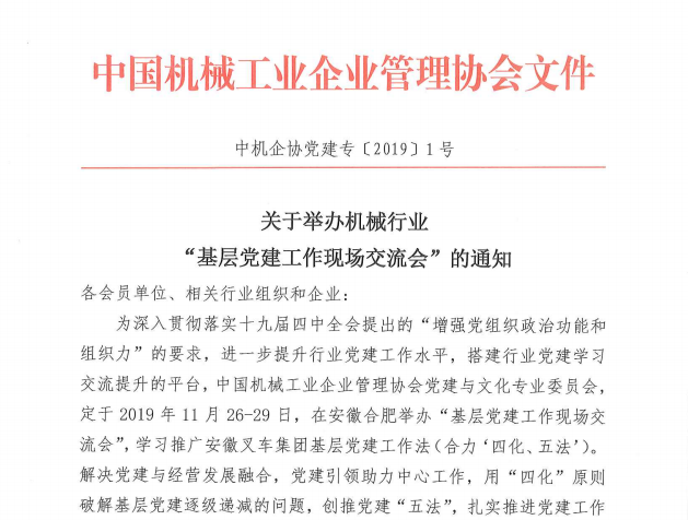 關(guān)于舉辦機(jī)械行業(yè)“基層黨建工作現(xiàn)場(chǎng)交流會(huì)”的通知