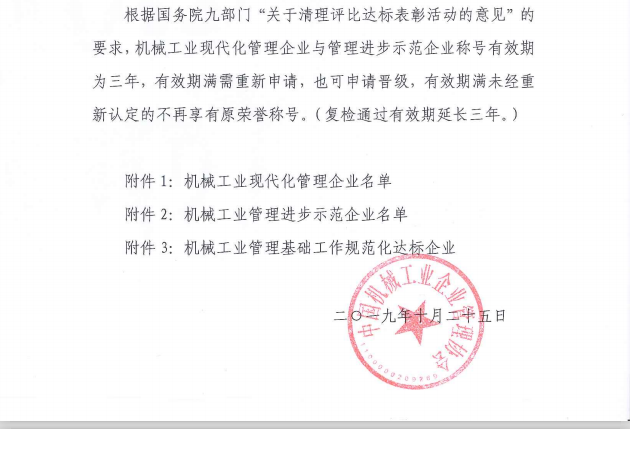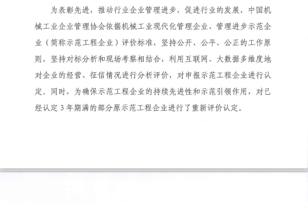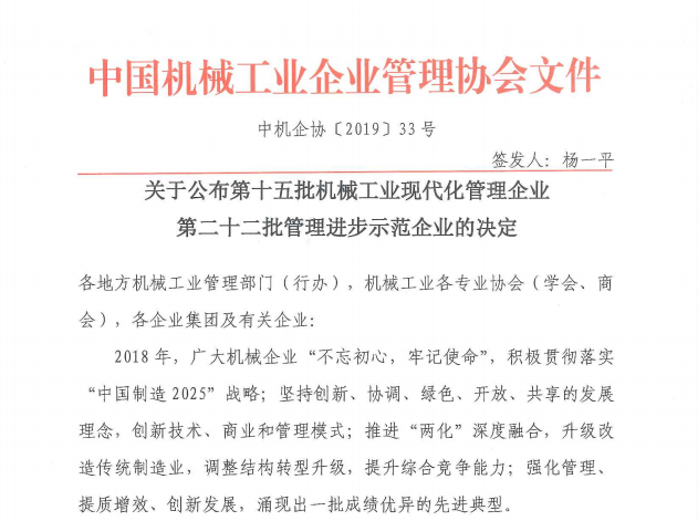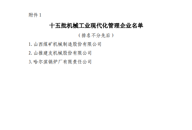 關(guān)于公布第15批機械工業(yè)現(xiàn)代化管理企業(yè)、第22批管理進步示范企業(yè)的決定
