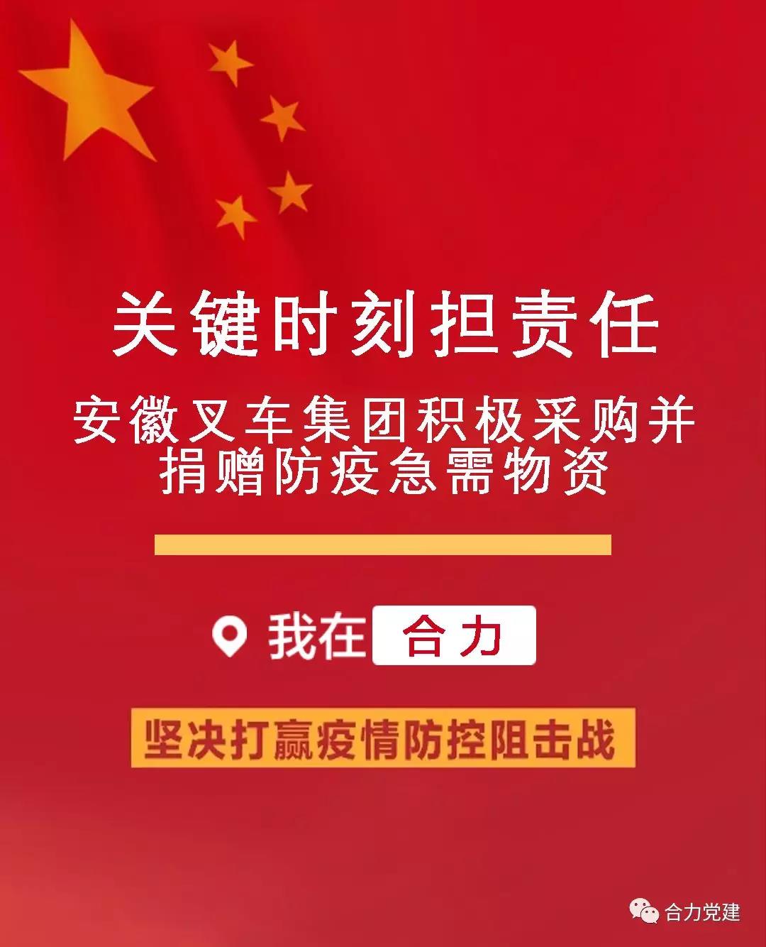 服務(wù)大局,不講條件!防控需要,合力支持!安徽叉車集團(tuán)深入學(xué)習(xí)習(xí)近平總書記關(guān)于防控新型冠狀病毒感染的肺炎疫情重要指示精神,積極落實(shí)安徽省委省政府及省國(guó)資委決策部署,在做好疫情防控各項(xiàng)工作的基礎(chǔ)上,積極調(diào)動(dòng)全球資源,第一時(shí)間向安徽省疫情防控應(yīng)急指揮部捐贈(zèng)了護(hù)目鏡、防護(hù)帽、隔離衣和防護(hù)服等防疫物資共計(jì)9400件,全力做好新型冠狀病毒感染的肺炎疫情防控及應(yīng)對(duì)工作,受到了安徽省疫情防控應(yīng)急指揮部的表彰。