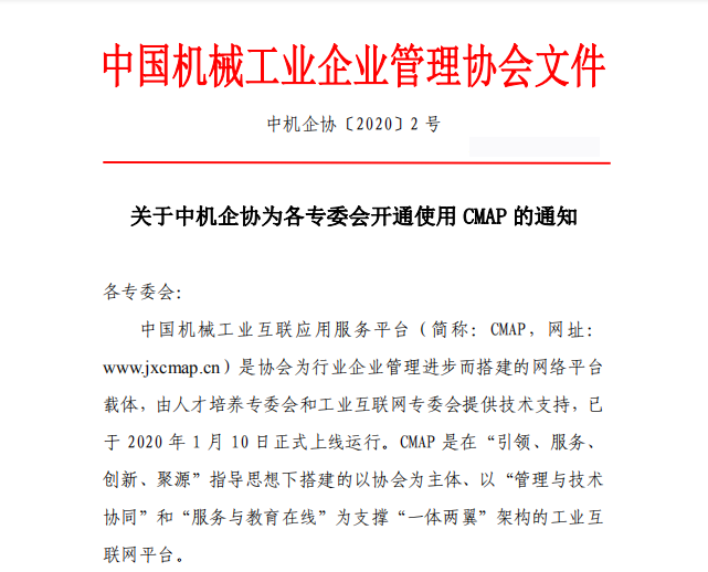 關(guān)于中機(jī)企協(xié)為各專委會(huì)開通使用 CMAP 的通知