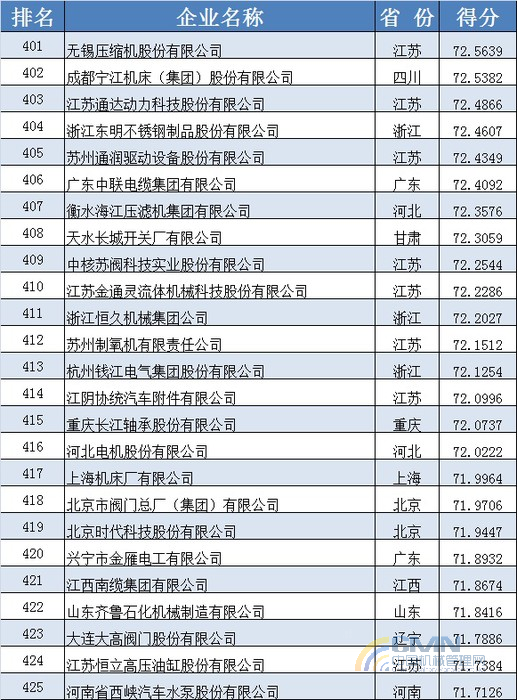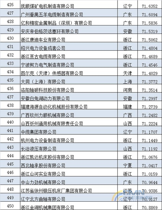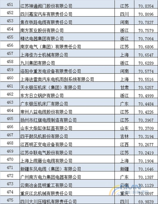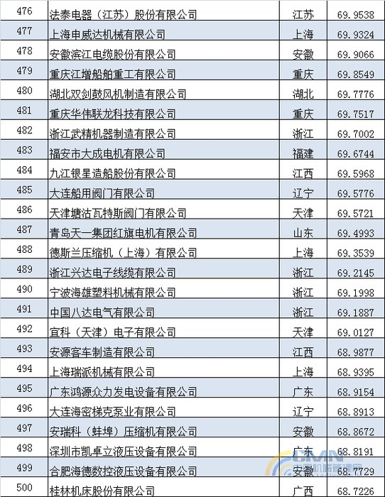 2012年中國機(jī)械500強(qiáng)排名(401-500)